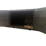 Kätevä varastotila, jota helppo lastata koko kyljen avautuessa auki.